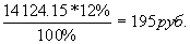 Вычеты по основному месту работы составили 1194р. 15коп., а если по основному месту работы вычеты рассчитывались, то по предпринимательской деятельности не рассчитываются. Определяем налогооблагаемую базу путем вычета из совокупного годового дохода вычетов по основному месту работы: 15318,30 – 1194,15 = 14124р. 15коп.