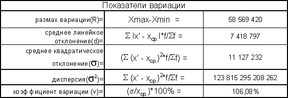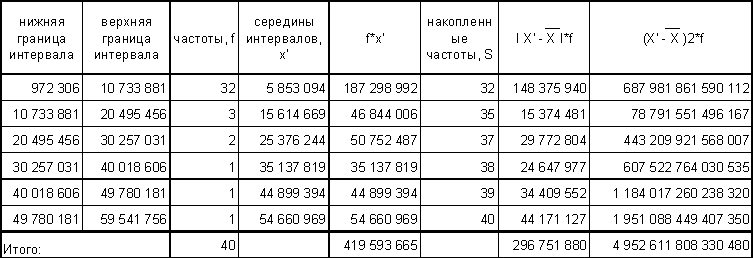 Выводы: Вариация факторного признака (чистых активов) для данной совокупности банков является значительной, индивидуальные значения отличаются в среднем от средней на 11 127 232 тыс. руб. *, или на 106,08%. Среднее квадратическое отклонение превышает среднее линейное отклонение в соответствии со свойствами мажорантности средних. Значение коэффициента вариации (106,08%) свидетельствует о том, что совокупность достаточно неоднородна.
