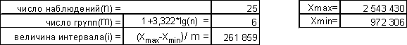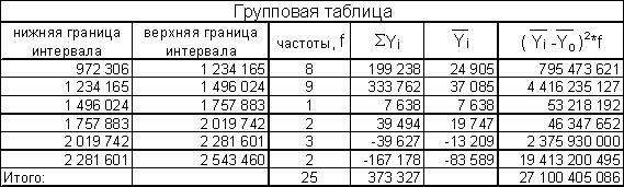 Правило сложения дисперсий проверено: общая дисперсия и сумма межгрупповой и средней внутригрупповой дисперсий совпадают. Из полученных данных можно сделать вывод, что на 29% вариация прибыли банков обусловлена различиями в величине их активов, а на 71% - влиянием прочих факторов. Таким образом, факторный признак (чистые активы банков) имеет среднее влияние на результативный признак (прибыль/убыток) .