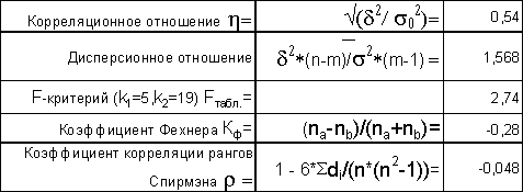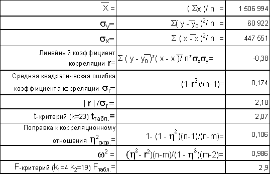 Пункт №3 Измерить степень тесноты связи с помощью корреляционных отношений, проверить возможность использования линейной функции в качестве формы уравнения связи.