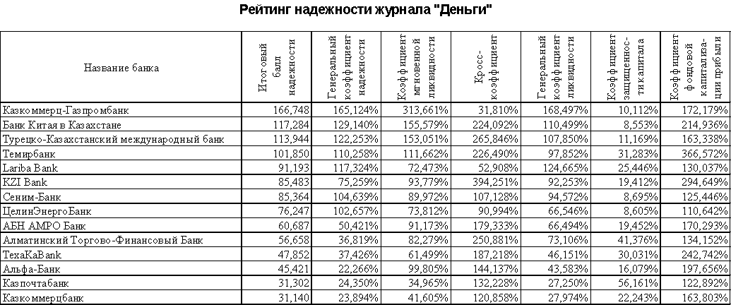 Таблица 5 Анализ надежности банка на основе рейтинговой системы Аналитические коэффициенты (рейтинг газеты “Известия” )