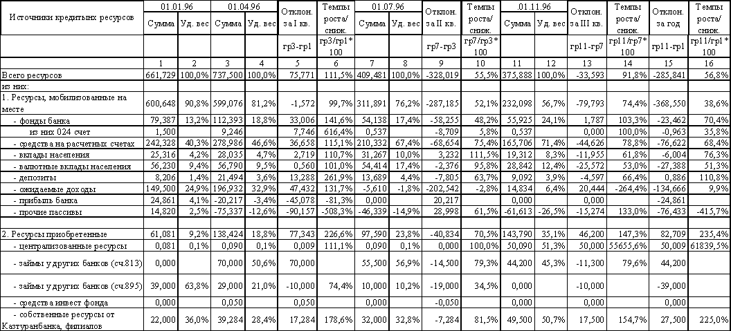 Таблица 7 Объем и период возможного использования кредитных ресурсов коммерческим банком по состоянию на (дата)