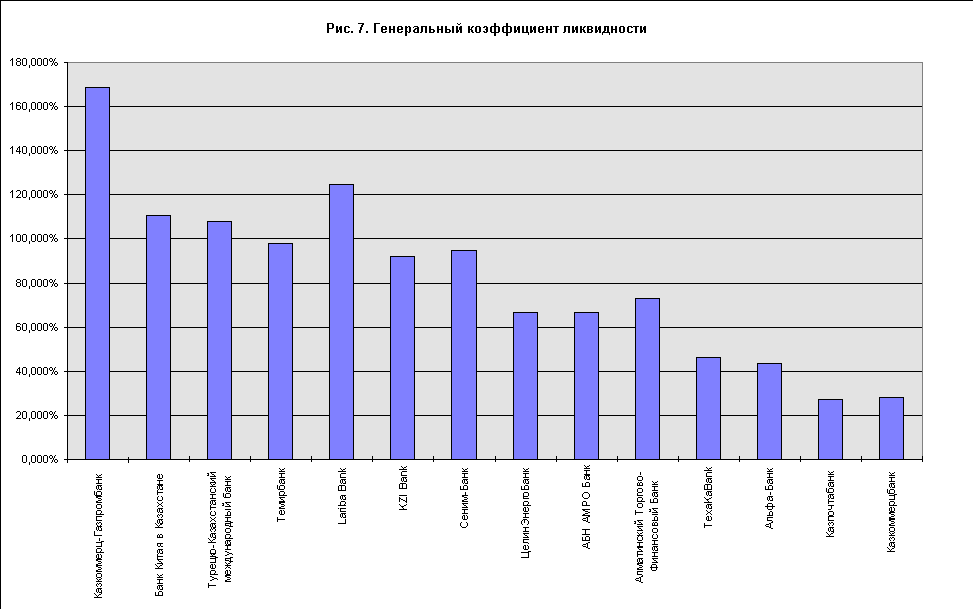 2.3. Управление надежностью коммерческого банка Система коэффициентов оценки финансового состояния коммерческого банка Необходимость создания методики сравнительного анализа работы коммерческих банков объясняется дальнейшим развитием казахстанского рынка финансовых и, конкретно, банковских услуг. Разработка методики, ее открытое обсуждение и внедрение системы сбора и обработки данных призваны создать информационное поле, необходимое не только аналитическим группам самих банков, но и в первую очередь участниками рынка – акционерам и клиентам банков, поскольку “точная” информация о состоянии коммерческих банков, собираемая Национальным банком Республики Казахстан, сейчас является закрытой, а потребности в ее интегральной обработке и публикации Нацбанк пока еще не испытывает. (Западная цивилизация давно уже осознала эту необходимость, для примера можно обратиться в такие американские издания, как Federal Reserve Bulletin) . Важным условием для разработки методики анализа является ее основа на действующем национальном плане счетов, отражающем исторически сложившиеся условия существования банковской системы. Проводимая сейчас Национальным банком работа по приближению казахстанских норм учета к международным стандартам скорее переносит “западные” стандарты учета на реальности казахстанской практики, чем ведет к детальной проработке имеющихся стандартов на основе складывающихся рыночных условий, введения принципиально новых видов банковских услуг и все более качественных различий в банковских операциях, отражающихся на одном и том же счете. Для полноценного анализа деятельности любого коммерческого банка необходимо вывести критерии, позволяющие в первую очередь оценить эффективность его работы, под которой понимается умение поддерживать баланс между достаточной надежностью банковских операций и его высокой рентабельностью. Для этого предлагается провести исследование результатов работы банка отдельно по каждой из характеристик: уровень ликвидности, уровень надежности и уровень рентабельности. Каждое значение является результатом обработки данных балансовых отчетов коммерческих банков, предварительно объединенных в несколько коэффициентов, и приведенных к виду, достаточному для сравнения и анализа. Следует признать, что абсолютная величина любого актива или пассива (или их групп) может мало что сказать о действительном финансовом положении банка. Бытующему заблуждению “Большой банк – надежный банк” с профессиональной точки зрения противостоит тезис “Большой банк – большие долги” , Экономическая история знает немало примеров сенсационных банкротств самых, казалось бы, крупных финансовых институтов – дело не в размерах, а в пропорциях. Разумеется, на уровнях, начинающих чувствовать границы финансового рынка (т.е. слишком маленький или чрезвычайно большой банк) величина размера начинает оказывать свое специфическое влияние, но в настоящем исследовании мы не будем касаться рассмотрения этих феноменов, а будем оперировать в интервале, интересном с практической точки зрения, т.е. в “интервале подавляющего большинства случаев” . А здесь роль играют не размеры, а пропорции. Группировка счетов В этом подразделе приведены алгоритмы сбора данных по группам, как сумм остатков по соответствующим с