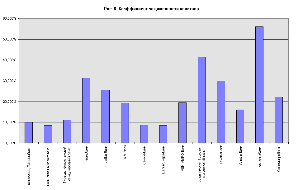7. Отношение собственного капитала банка к сумме его активов, взвешенных по степени риска должно быть не менее 0,08: