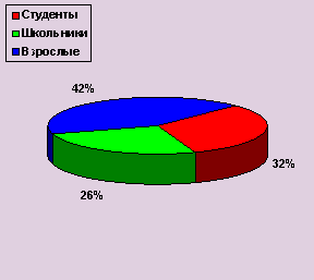 И, наконец, последняя группа. Это Post It “желтого” производства никому не известных торговых марок Китая и Тайваня. Цены на них минимальные, но при этом качество ниже всякой критики - листок отклеивается даже от гладкой поверхности и падает на пол уже через несколько минут. Конечно, ни о каком многократном переклеивании речи уже не идет. 3.2. МАРКЕТИНГОВОЕ ИССЛЕДОВАНИЕ ПОВЕДЕНИЯ ПОТРЕБИТЕЛЕЙ И КАНАЛОВ РАСПРЕДЕЛЕНИЯ В ОБЛАСТИ КАНЦЕЛЯРСКОГО БИЗНЕСА Маркетинговое исследование потребителей Все мы хорошо помним очереди за канцелярскими товарами в преддверии нового учебного года, когда покупался любой товар, по любой цене и в больших количествах. Сегодня ситуация на рынке резко изменилась. Появилась масса новой, более качественной продукции, которая способна удовлетворить любые запросы потребителей. Цель маркетингового исследования состоит в изучении потребителей и определении факторов, влияющих на решение о покупке данного товара. Маркетинговое исследование было проведено по ряду канцелярских товаров, а именно по группе бумажной продукции: тетради, сменные блоки, альбомы для рисования, дневники, тетради для нот, блокноты, кубарики, бумага для записи с клеевой полосой. Была разработана анкета, с помощью которой выяснилось: -состав потребителей данных товаров (по возрасту) ; -поведение потребителей при покупке; -факторы, влияющие на решение о покупке. Было опрошено 62 респондента. В основном это были люди от 14 до 40 лет: студенты, школьники и их родители. В процентном соотношении по половому составу: мужчины - 43,6 % и соответственно, женщины - 56,4 % (из опрашиваемых респондентов) . [ 5 ] Ниже приведена классификация респондентов по другим признакам (Рисунок 2) : школьники, студенты, взрослые люди. В результате анкетирования выделились следующие группы факторов, влияющих на решение о покупке: 1) факторы, которые были названы абсолютно всеми респондентами: • качество товара; • приемлемая цена: • качество обслуживания; 2) группа факторов, которые принимаются во внимание отдельными потребителями, а для других не имеют значения: • красивая упаковка и дизайн; • советы друзей; • советы продавца; • советы других покупателей; 3) К третьей группе факторов, не оказывающих никакого влияния на покупку респондентами, отнесены реклама и имидж предприятия торговой сети. Рисунок 2. Классификация респондентов