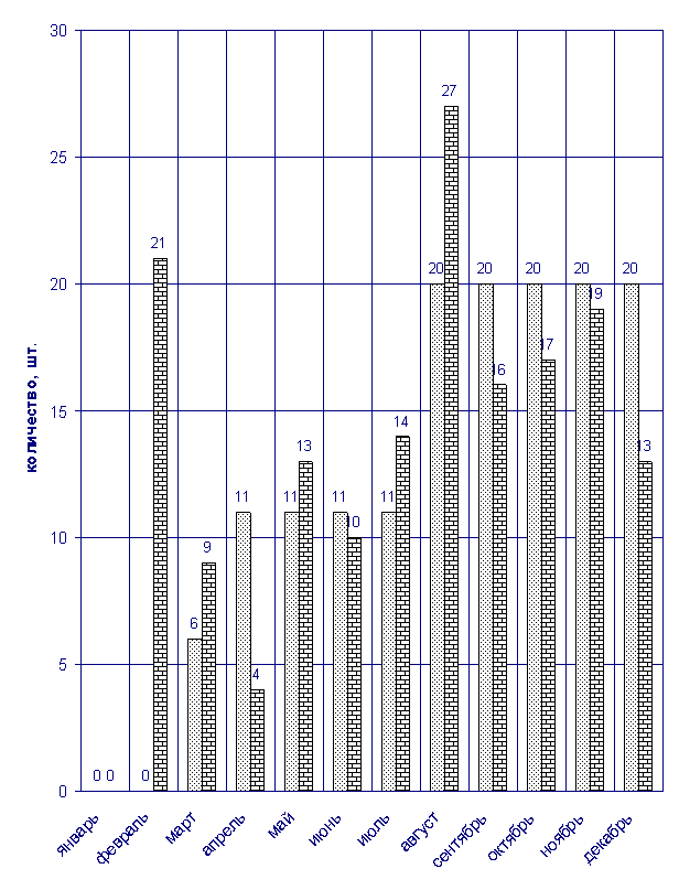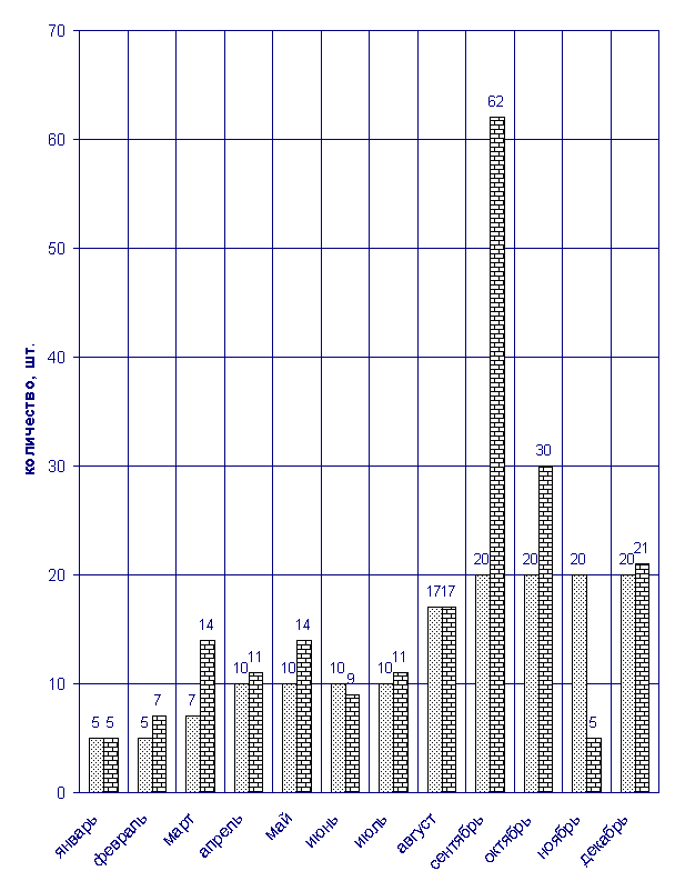 Практически все выпускаемые на заводе изделия, как производственного, так и бытового назначения, имеют небольшие габариты. Ассортимент продукции находится в непосредственной зависимости от сезонного потребления, и поэтому его планирование осуществляется ежемесячно, так как предприятию невыгодно, чтобы продукция одного вида задерживалась на складе, а продукции другого вида было недостаточно. Планирование осуществляется следующим образом. Сотрудники отдела продаж изучают потребности покупателей и определяют количество изделий, которое необходимо произвести в следующем месяце. Ежедневно проводятся собрания под руководством главного инженера. Связь между членами собрания осуществляется посредством внутренней телефонной сети завода. В собрании участвуют заместитель директора по производству, заместитель директора по снабжению, начальник отдела продаж, директор, главный бухгалтер. Начальник отдела продаж выдает информацию о существующих потребностях на рынке. И, прежде чем запустить в производство продукцию в запланированном ассортименте, начальник цеха согласовывает с отделом материально-технического снабжения вопросы наличия необходимых для изготовления продукции материалов и сроков их поставки. Планирование выпуска новой продукции осуществляется только при наличии спроса. Проследить соотношение объемов реализации и объемов производства по месяцам можно на примере котла электронагревательного КЭН-10 и трансформатора “Смолик” (рис. 1,2) .