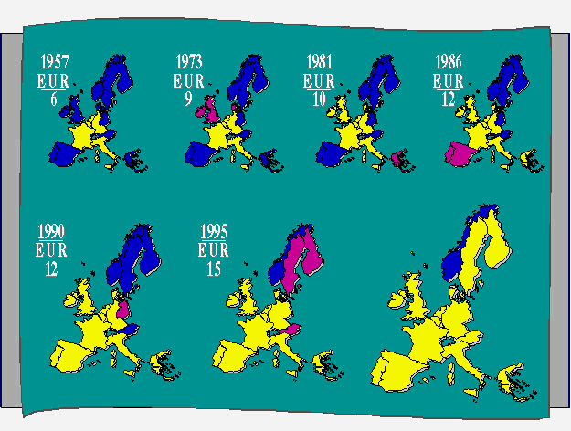 Рисунок 1. Эволюция Европейского Экономического Союза С самого начала в Договоре заложены предпосылки интеграции. Ст. 107: “... каждое государство-член рассматривает свою политику в области валютных курсов как сферу общих интересов” . В соответствии с Договором, в 1958 году создан Монетарный комитет, в задачи которого входит: “... наблюдение за валютно-финансовым и денежно-кредитным положением государств-членов и Сообщества в целом, а также наблюдение за общим платежным оборотом государств-членов и представление Совету (министров ЕЭС - авт.) или Комиссии по ЕЭС регулярных отчетов по этим наблюдениям; по запросу Совета или Комиссии или же по собственной инициативе представление заключений” . Монетарный Комитет осуществляет свою деятельность совместно с Комитетом Президентов Центральных Банков. Он создан в 1964 году. Основные задачи: представление консультаций по основным направлениям политики Центральных Банков, регулярный обмен информацией о важнейших мероприятиях, проводимых ими, последующий контроль за проведением операций. Оба эти органа заседают раз в месяц. Их деятельность до начала функционирования Европейской Валютной Системы (ЕВС) , о чем непременно будет сказано ниже, не могла быть достаточно эффективной. Решения носили скорее программно-политический характер, нежели конкретно-правовой. Первые попытки поэтапного создания экономического валютного союза ЕЭС были сделаны в начале 70-х гг. (решения Совета Министров ЕЭС от 22 марта 1971 г. и 21 марта 1972 г.) Но они опередили свое время, хотя и были продиктованы необходимостью: кризис Бреттон-Вудской валютной системы и глубокий валютный кризис. Итак, с начала второй половины XX века в Европе сложился альянс из сильнейших государств континента, который помогал преодолеть чрезмерную территориально-политическую раздробленность, образовывал (сначала неявно) некий баланс сил в мире по отношению к США (с распадом СССР ЕЭС остался, пожалуй, единственным противовесом этой супердержаве) , а также заложил необходимую базу для продолжения экономической интеграции стран-участниц. “Европейская валютная змея”