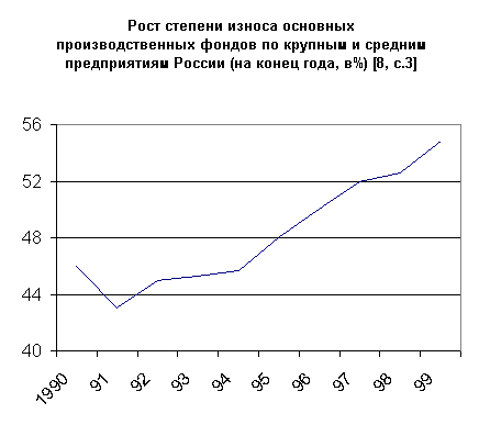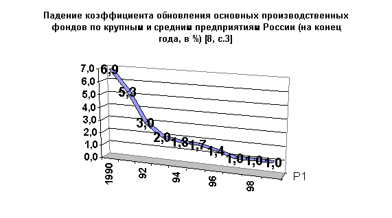В 1998 году в России впервые за годы реформ отмечалось некоторое оживление инновационной деятельности – доля инновационно-активных промышленных предприятий в российской экономике составила 5%, что на 0,3 пункта выше, чем в предшествующем году (однако в 1999г. это показатель снизился до 4,8%) . Инновации осуществляли свыше 1,2 тысячи отечественных предприятий [16, c. 23]. В то же время структура затрат на инновации не претерпела каких-либо значительных изменений: хотя по сравнению с 1997г. затраты на исследования и разработки выросли на 31%, на приобретение машин и оборудования – на 28%, а технологическую подготовку производства – на 21%, как и в предыдущие годы доминируют затраты, связанные с внедрением нововведений (62%) [16, c. 23]. Основным источником финансирования инноваций остаются собственные средства предприятий (74%) . Кредиты и займы, учитывая высокие процентные ставки в 1998г., использовались предприятиями на эти цели (финансирование инноваций) весьма ограничено – 14%; на долю государства, включая бюджеты всех уровней, в 1998г. пришлось лишь 4,4% всего финансирования инноваций [16, c. 23]. Нынешние приоритеты инновационной деятельности во многом обусловлены слабой внешней конкурентоспособностью отечественных товаров. Российские предприятия в значительной мере ориентированы сейчас на диверсификацию своего производства, внедрение импортозамещающей продукции в целях наиболее оптимального и скорого удовлетворения внутреннего спроса (основная задача, по мнению 85% инновационно-активных предприятий, состоит в расширении ассортимента выпускаемой ими продукции) . Однако проведённый мониторинг результатов инновационной деятельности свидетельствует о низкой её эффективности для отечественной экономики. Так в 1998г. доля инновационной продукции составила лишь 13% объёма отгруженной промышленной продукции инновационно-активных предприятий [16, c. 23]. Такой низкий уровень новизны российской продукции способен обернуться в дальнейшем ослаблением и без того слабой конкурентоспособности отечественной промышленности. Такое положение дел уже негативно сказывается на экспорте инновационной продукции. В отечественной промышленности обесцениваются даже те сравнительно небольшие средства, которые расходуются на инновации. Причины тому мы уже упоминали ранее – недостаток денежных средств у предприятий, основного источника финансирования инноваций; слабая финансовая поддержка инновационной активности со стороны государства; высокая стоимость нововведений (в основном импортируемых) . В результате чего в течение 1996-98 г. г. в национальной промышленности была серьёзно задержана реализация 1896 инновационных проектов, приостановлены или прекращены вовсе 1098 проектов, а 1447 даже не начаты [16, c. 23]. Инвестиционный спад в России действительно во многом обусловлен ограниченными возможностями внутренних накоплений, а также кризисным обесцениванием основного производственного капитала, однако было бы неверным считать дефицит национальных сбережений единственной и основной причиной “инвестиционного голода” . Гораздо важнее то, что в масштабах всего национального хозяйства предельная производительность капитала отрицательна, т.е. каждый рубль вложенный в производство не только не создаёт новой стоимости, но и уменьшает уже имеющуюся. В этой связи возможны 