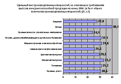 3.4 Слабое развитие рыночных институтов На данный момент в России практически отсутствует адекватный рынок лизинговых, факториноговых, трастовых услуг. Слабо разработана правовая база их создания и функционирования. Достаточно редко и неэффективно применяется процедура банкротства предприятий, при том что её действия направлены на ликвидацию малоэффективных и неконкурентоспособных участников рынка, тем самым очищая и нормализируя структуру рынка. Налоговая система носит ярко выраженный фискальный характер, не способствующий развитию отечественного предпринимательства и толкающий предприятия на сокрытие своих доходов и на переход в “теневой сектор” . Необходимо также обратить внимание на слабое развитие инвестиционных институтов и фондовых рынков, существование которых способствует более эффективному перераспределению свободных денежных средств предприятий между секторами национальной экономики. Также приковывает своё внимание проблема разработки и принятия нормативно-правовых актов, необходимых для регулирования взаимоотношений между субъектами рынка, установки общих правил игры. Отсутствие же законодательной базы или же её слабая проработка способствует лишь дезорганизации товарных рынков и значительному снижению эффективности и полезности экономических реформ в России. 3.5 Слабая инвестиционная и инновационная активность Осуществлению активной промышленной политики, реструктуризации депрессивных отраслей и развитию высокотехнологичных обрабатывающих секторов в дальнейшем периоде препятствует ряд объективных факторов, ограничивающих развитие инвестиционной активности. Главными из них являются: