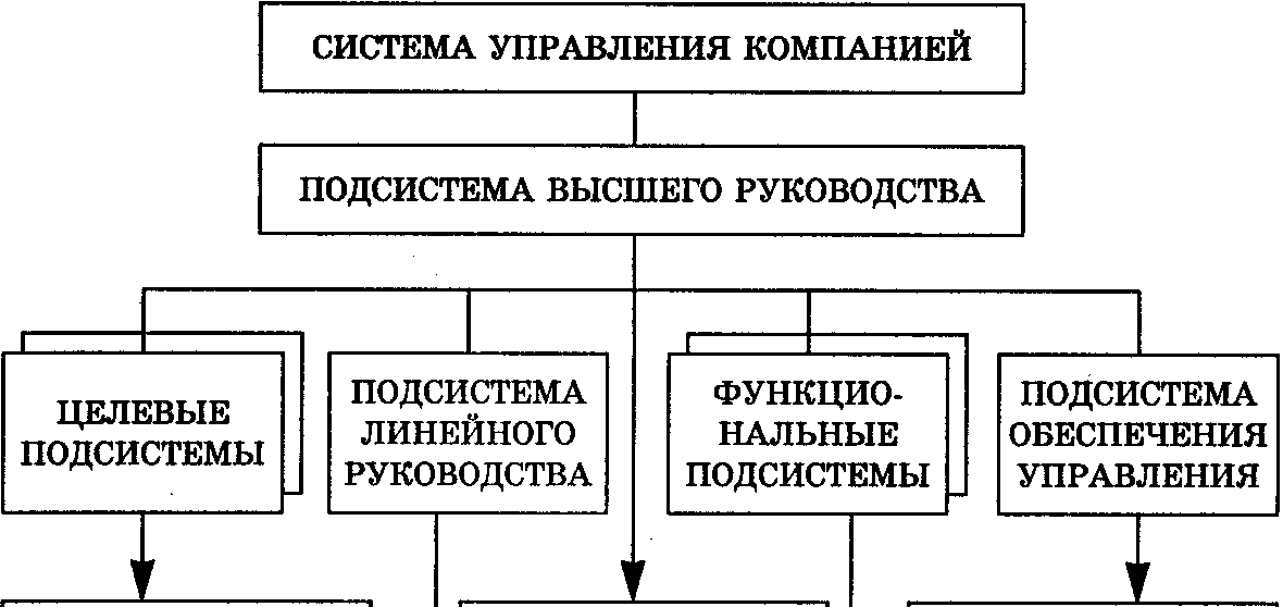 Схема 1 достижения запланированных конечных результатов по каждой основной цели; •Ф- подсистемы управления программами (в модели функционально-программно-целевого управления) . Различают программы, разработанные по стратегическим направлениям деятельности компании (например, программа достижения лидирующего положения на том или ином рынке) , и программы создания, производства и реализации сложных видов продукции (например, создания нового магистрального самолета) или комплексов продукции (например, комплекса бытовой техники) ; •^ подсистема линейного руководства производством, в рамках которой осуществляется непосредственное управление производственными процессами на основе единоначалия и интеграции целевого (программно-целевого) и функционального управления. Эта подсистема включает всех линейных руководителей производства (от управляющего СЗХ до мастера производственного участка) . В отличие от целевых и функциональных подсистем, в которых преобладают горизонтальные связи взаимодействия (координации) между субъектами управления, в подсистеме линейного руководства преобладают вертикальные связи подчинения (субординации) ; •^ функциональные подсистемы, реализующие управление по конкретным функциям (таким как: корпоративное или внутризаводское технико-экономическое планирование производства; организация производства, организация труда и т.д.) , дифференцируемым по основным целям на специальные функции управления; •Ф- подсистема обеспечения управления, организующая правовое, нормативное, информационное и техническое обеспечение управления путем создания соответствующих структур, осуществляющих эти функции, формирования банков данных, организации коммуникаций, организации сервисного обслуживания автоматизированных рабочих мест менеджеров и т.д.