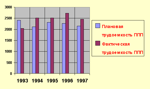 Рисунок 2.1 – Динамика трудоемкости работ ППП ш/у “Октябрьское” за период 1993-1997 г. г.