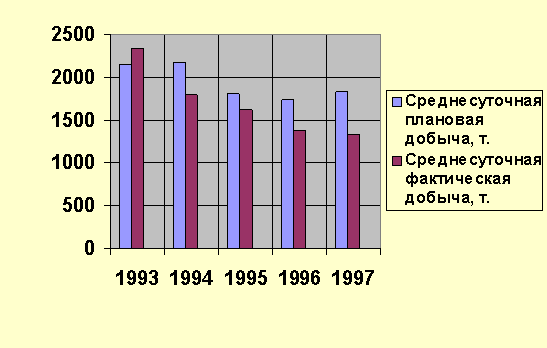 Таким образом, план добычи на 1998 год составит 1941,521 т./сут. Этот план добычи угля будет принят для выполнения последующих задач курсового проекта по технико-экономическому планированию.