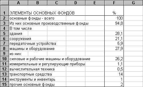 О видовой структуре основных фондов промышленности России можно судить по следующим данным: