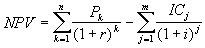 Если проект предполагает не разовую инвестицию, а последовательное инвестирование финансовых ресурсов в течение m лет, то формула для расчета NPV модифицируется следующим образом: