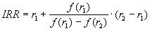 ) функция NPV=f (r) меняла свое значение с "+" на "-" или с "-" на "+". Далее применяют формулу