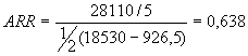 Очевидно, что если: Р1 > 1, то проект следует принять; Р1 < 1, то проект следует отвергнуть; Р1 = 1, то проект ни прибыльный, ни убыточный. В отличие от чистого приведенного эффекта индекс рентабельности является относительным показателем. Благодаря этому он очень удобен при выборе одного проекта из ряда альтернативных, имеющих примерно одинаковые значения NPV. либо при комплектовании портфеля инвестиций с максимальным суммарным значением NPV. 1.5. Метод расчета коэффициента эффективности инвестиции. Этот метод имеет две характерные черты: во-первых, он не предполагает дисконтирования показателей дохода; во-вторых, доход характеризуется показателем чистой прибыли PN (балансовая прибыль за минусом отчислений в бюджет) . Алгоритм расчета исключительно прост, что и предопределяет широкое использование этого показателя на практике: коэффициент эффективности инвестиции (ARR) рассчитывается делением среднегодовой прибыли PN на среднюю величину инвестиции (коэффициент берется в процентах) . Средняя величина инвестиции находится делением исходной суммы капитальных вложений на два, если предполагается, что по истечении срока реализации анализируемого проекта все капитальные затраты будут списаны; если допускается наличие остаточной или ликвидационной стоимости (RV) , то ее оценка должна быть исключена.