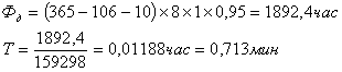Д вых – количество выходных дней в году, Д пр – количество праздничных дней, Т см – продолжительность рабочей смены, К см – коэффициент сменности, К ппр – коэффициент потерь времени на проведение планово-предупредительных ремонтов (5%) .