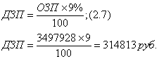 Кроме того, основным рабочим выплачивают дополнительную заработную плату (ДЗП) (оплата отпусков, выполнение государственных обязанностей) , которая составляет 9% от ОЗП: