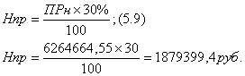 ПР н = ПР б - ПР бд - Н фпр ; (5.7) ПР н = 7233519-345681-35024,55-526003,6-62145,3 = 6264664,55 руб.