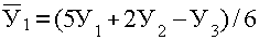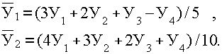 Недостаток методики сглаживания скользящими средними состоит в условности определения сглаженных уровней для точек в начале и конце ряда. Получают их специальными приемами – расчетом средней арифметической взвешенной. Так, при сглаживании по трем точкам выровненное значение в начале ряда рассчитывается по формуле 24: