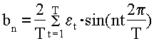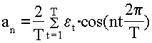 Общее число колебательных процессов, которые можно выделить из ряда, состоящего из Т уровней, равно Т/2. Обычно ограничиваются меньшим числом наиболее важных гармоник. Параметры гармоники с номером n определяются по формулам 36 –38: