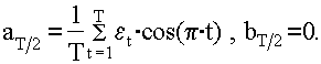 при n=1,2,..., (T/2 – 1) ; 3)