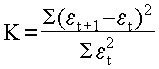 (41) Для последовательностей выполняется проверка на автокорреляцию по критерию Дарбина – Уотсона. Если значение К близко к 2, то данный ряд отклонений оставляют без изменений. Если же К заметно отличается от 2, то по такому ряду находят параметры уравнения авторегрессии по формулам 42: (42) Более полные уравнения авторегрессии можно получить на основе анализа автокорреляционной функции, когда определяются число параметров () и соответствующие этим параметрам величины шагов.
