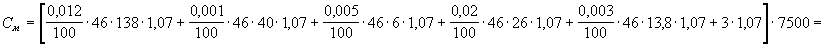 , где: См – затраты на вспомогательные материалы; qм – норма расхода материала на одно изделие; Цм – действующая оптовая цена весовой единицы материала; Ктз – коэффициент транспортно-заготовительных расходов; N – годовая программа выпуска изделий по участку; n – виды основных материалов.