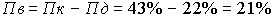 Процентная ставка (Пк) за предоставленный кредит равна 43%, а ставка по депозитным вкладам (Пд) равна 22%. Отсюда: