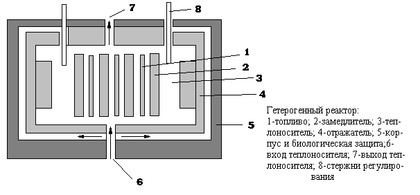 В настоящее время для энергитических целей проектируют только гетерогенные реакоры. Ядерное топливо в таком реакторе может использоваться в газообразном, жидком и твердом состояниях. Однако сейчас гетерогенные реакторы работают только на твердом топливе. В зависимости от замедляющего вещества гетерогенные реакторы делятся на графитовые, легководные, тяжеловодные и органические. По виду теплоносителя гетерогенные реакторы бывают легководные, тяжеловодные, газовые и жидкометаллические. Жидкие теплоносители внутри реактора могут быть в однофазном и двухфазном состояниях. В первом случае теплонситель внутри реактора не кипит, а во втором - кипит. Реакторы, в активной зоне которых температура жидкого теплоносителя ниже температуры кипения, называются реакторами с водой под давлением, а реакторы, внутри которых происходит кипение теплоносителя, - кипящими. В зависимости от используемого замедлителя и теплоносителя гетерогенные реакторы выполняются по разным схемам. В России основные типы ядерных энергитических реакторов - водо-водяные и водографитовые. По конструктивному исполнению реакторы подразделяются на корпусные и канальные. В корпусных реакторах давление теплоносителя несет корпус. Внутри корпуса реактора течет общий поток теплоносителя. В канальных реакторах теплоноситель подводится к каждому каналу с топливной сборкой раздельно. Корпус реактора не нагружен давлением теплоносителя, это давление несет каждый отдельный канал. В завасимости от назначения ядерные реакторы бывают энергитические, конверторы и размножители, исследовательские и многоцелевые, транспортные и промышленные. Ядерные энергитические реакторы используются для выработки электроэнергии на атомных электростанциях, в судовых энергитических установках, на атомных теплоэлектроцентралях ( АТЭЦ), а также на атомных станциях теплоснабжения (АСТ). Реакторы, предназначенные для производства вторичного ядерного топлива из природного урана и тория, называются конверторами или размножителями . В реакторе - конверторе вторичного ядерного топлива образуется меньше первоначально израсходованного. В реакторе - размножителе осуществляется расширенное воспроизводство ядерного топлива, т.е. его получается больше, чем было затрачено. Исследовательские реакторы служат для исследований процессов взаимодействия нейтронов с веществом, изучения поведения реакторных материалов в интенсивных полях нейтронного и гамма-излучений, радиохимических и биологических исследований, производства изотопов, эксперементального исследования физики ядерных реакторов. Реакторы имеют различную мощность, стационарный или импульсный режим работы. Наибольшее распространение получили водо-водяные исследовательские реакторы на обогащенном уране. Тепловая мощность исследовательских реакторов колеблется в широком диапазоне и достигает нескольких тысяч киловатт. Многоцелевыми называются реакторы, служащие для нескольких целей, например для выработки энергии и получения ядерного топлива. Энергетическая проблема - одна из важнейших проблем, которые сегодня приходится решать человечеству. Уже стали привычными такие достижения науки и техники, как средства мгновенной связи, быстрый транспорт, освоение космического пространства. Но все это требует огромны