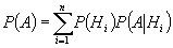Теорема гипотез (формула Байеса). Пусть вероятность полной группы не совместных гипотез H 1 , H 2 , …, H n известны и равны P(H 1 ), P(H 2 ), …, P(H n ). Событие А может появиться совместно с условной вероятностью P(A|H i ) (i=1,2,…,n). Спрашивается, как следует изменить вероятности гипотез после проведения опытов в связи с появлением этого события. Иными словами, требуется найти условную вероятность P(H i ,A).