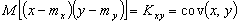 Корреляционным моментом или Ковариацией случайных величин x и y называют величину:
