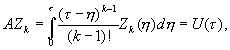 Интегрируя эту систему, получим систему интегральных уравнений Вольтерра первого рода: