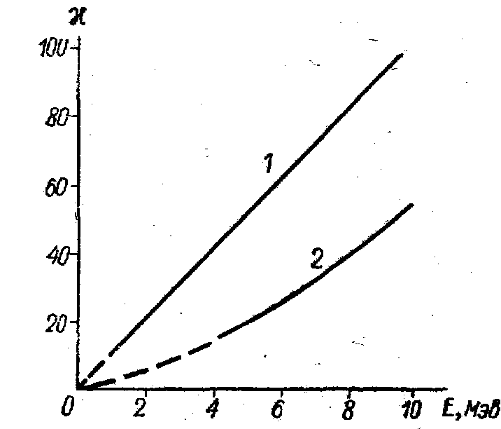 Возможность энергетического анализа регистрируемого излучения. В самом деле, для легких заряженных частиц (электроны) интенсивность вспышки в сцинтилляторе пропорциональна энергии, потерянной частицей в этом сцинтилляторе. С помощью сцинтилляционных счетчиков, присоединенных к амплитудным анализаторам, можно изучать спектры электронов и g -лучей. Несколько хуже обстоит дело с изучением спектров тяжелых заряженных частиц ( a -частицы и др.), создающих в сцинтилляторе большую удельную ионизацию. В этих случаях пропорциональность интенсивности вспышки потерянной энергии наблюдается не при всяких энергиях частиц и проявляется только при значениях энергии, больших некоторой величины. Нелинейная связь амплитуд импульсов с энергией частицы различна для различных фосфоров и для различных типов частиц. Это иллюстрируется графиками на рис.1 и 2.