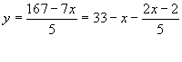 Так как х, у Є Z, то методом перебора легко найти соответствующие пары значений х и у , которые удовлетворяют уравнение 7х + 5у = 167. (1; 32), (6; 25), (11; 18), (16; 11), (21; 4). Из этих решений наиболее выгодное последнее, т.е. х = 21 , у = 4.