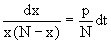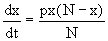 Исследование поведения различных систем (технические, экономические, экологические и др.) часто приводит к анализу и решению уравнений, включающих как параметры системы, так и скорости их изменения, аналитическим выражением которых являются производные. Такие уравнения, содержащие производные, называются дифференциальными. Рассмотрим следующий пример из области рекламного дела. При организации продажи нового товара торговым предприятиям зачастую приходится прибегать к услугам рекламы. Для того, чтобы последняя была успешной и современной, необходимо знать закон распространения информации о новом товаре среди ее потенциальных покупателей. Найдем вид указанной закономерности при следующих предположениях относительно рассматриваемого процесса. Пусть N – общее число потенциальных покупателей нового товара, x(t) – число покупателей, знающих к моменту времени t о поступлении в продажу нового товара, [N-x(t)] – число покупателей еще не имеющих информации о товаре. Предположим, что информация о товаре распространяется среди покупателей посредством их общения между собой. Будем считать, что в течение достаточно малого промежутка времени возможна встреча лишь двух покупателей, и вероятность этой встречи считаем равной P. Вероятность того, что при встрече покупатель, знающий о товаре, встретиться с покупателем, еще не имеющем информации о товаре, равна (N-x)/N. Тогда скорость изменения величины x(t) в момент t равняется px(N-x)/N систематическому ожиданию числа покупателей впервые узнавших о товаре. Таким образом, получаем уравнение