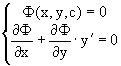Рассматривая последнее вместе с уравнением Ф(x,y,c)=0, т.е. рассматривая систему