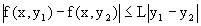 Б) функция f(x,y) удовлетворяет в областиR по переменной y условию Липшица, т.е.