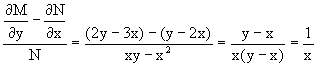 получаем, что для M(x,y) и N(x,y) должно выполняться условие