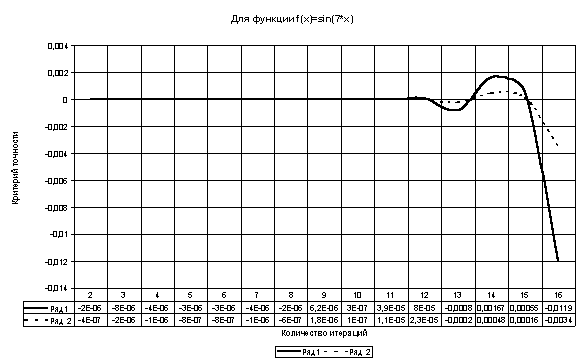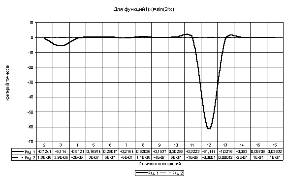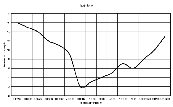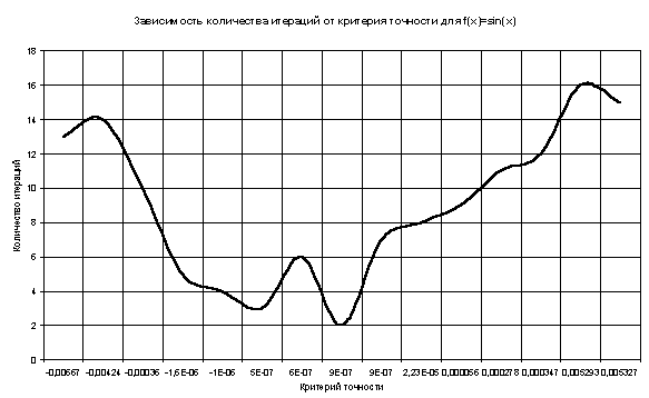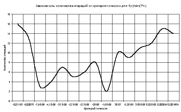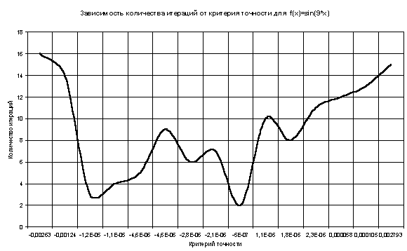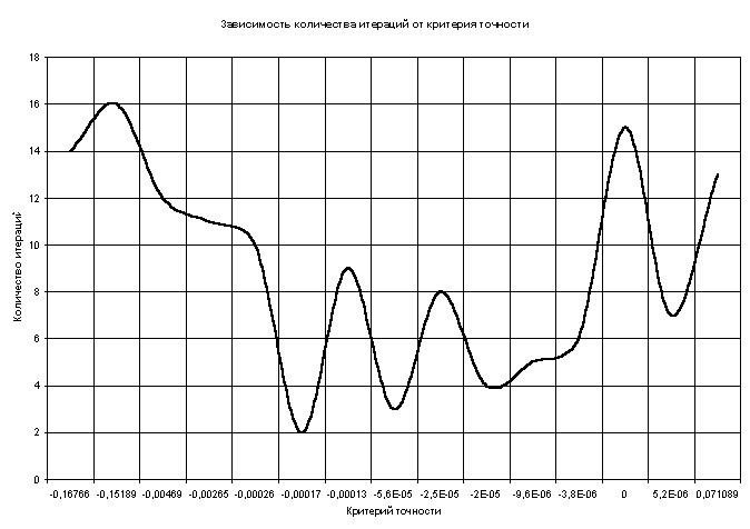 Таблица и график зависимости количества итераций от различных значений критерия точности