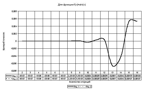 Таблица и график зависимости значений критерия точности от количества итераций
