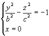 Уравнение (5) называется каноническим уравнением двуполостного гиперболоида. Установим геометрический вид поверхности (5). Для этого рассмотрим его сечения координатными плоскостями Oxy и Oyz. Получаем соответственно уравнения