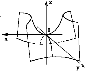 где p>0, q>0. Уравнение (9) называется каноническим уравнением гиперболического параболоида. Рассмотрим сечение параболоида плоскостью Oxz (y=0). Получаем уравнение