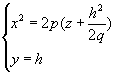 из которых следует, что при любом h в сечении получается парабола, направленная вниз, а вершина её лежит на параболе, определённой уравнениями (10). Рассмотрим сечения параболоида плоскостями z=h, параллельными плоскости Oxy . получим уравнения