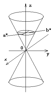 Рассмотрим геометрические свойства конуса. В сечение этой поверхности плоскостью Oxy (y=0) получаем линию