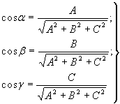 Зная, что для любой точки, принадлежащей плоскости, с координатами (A,B.C) можно вычислить направляющие косинусы