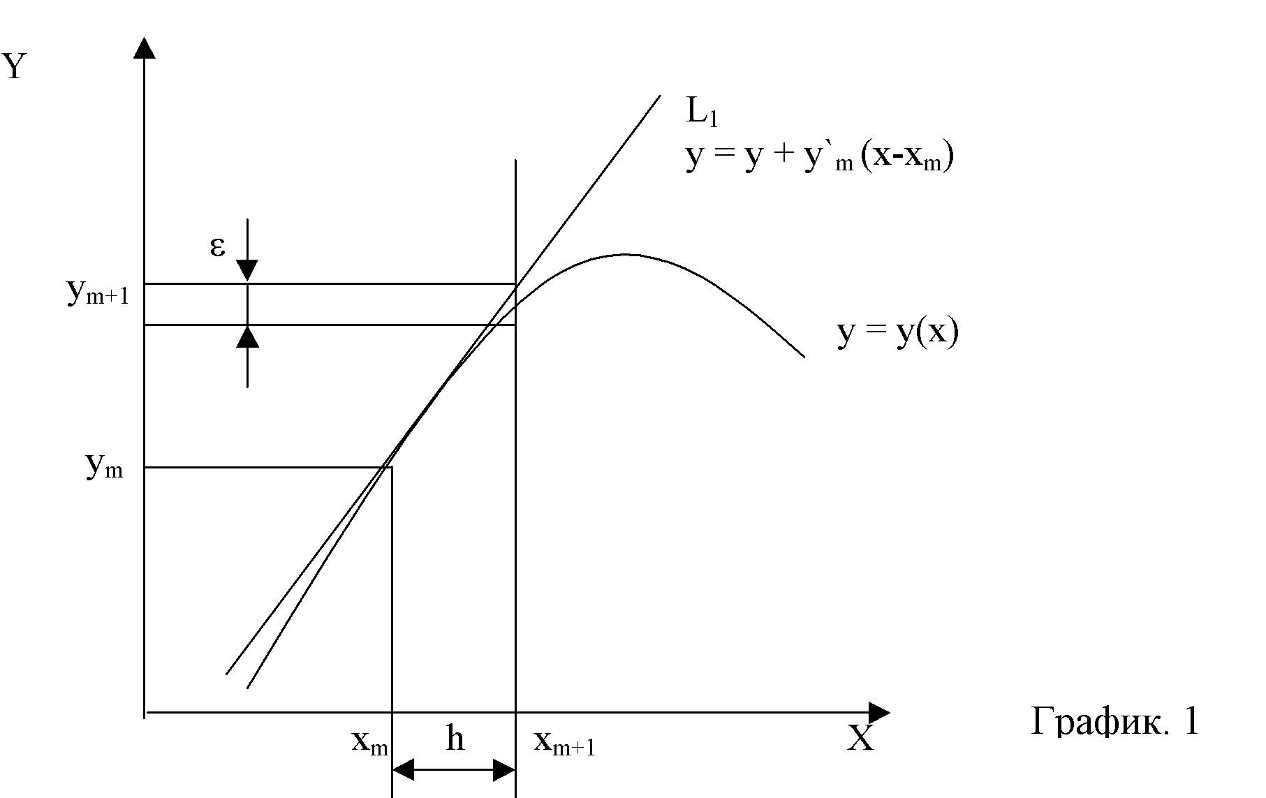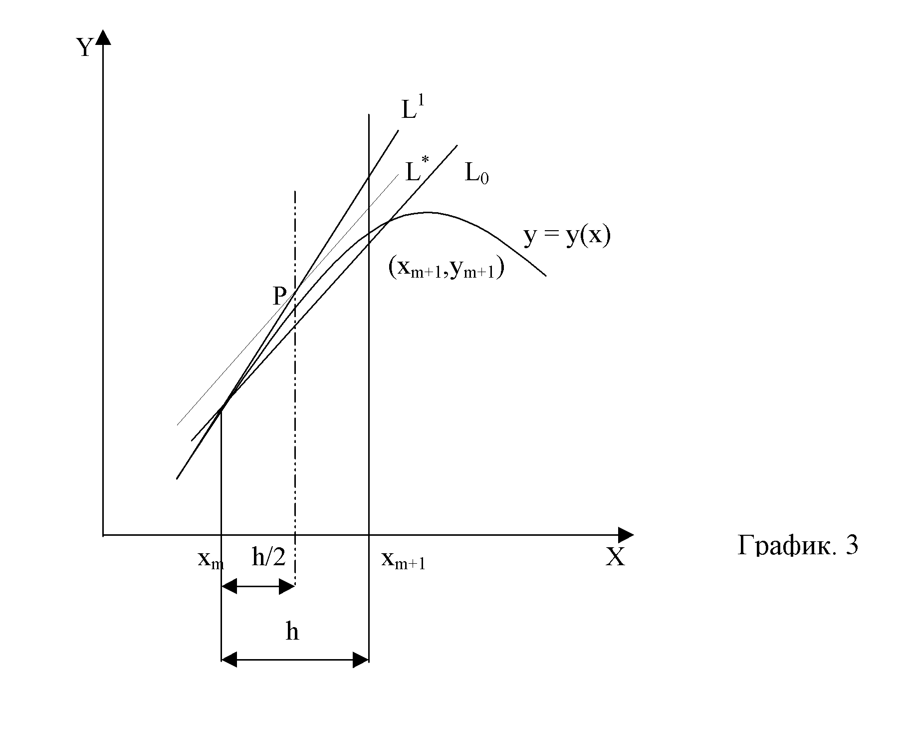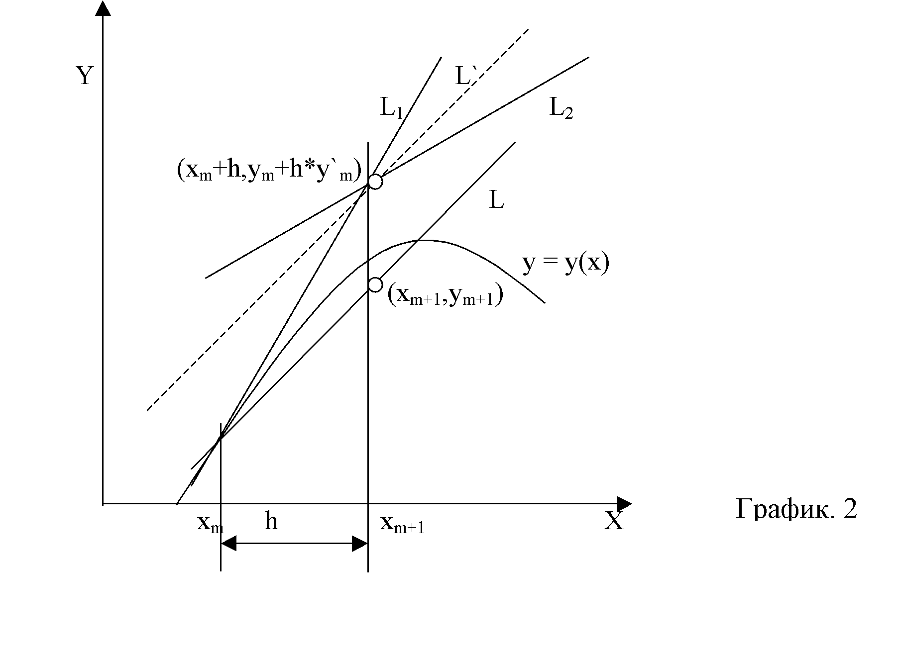 Тогда следующей точкой решения можно считать ту, где прямая L 1 пересечет ординату, проведенную через точку x=x m+1 =x m +h.