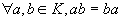 удовлетворяют следующим свойствам: 1. < K, +> - аддитивная абелева группа,