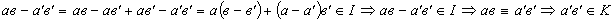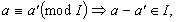 Пусть К является областью целостности. Зададим на нём отношение “сравнения по идеалу I ”.
