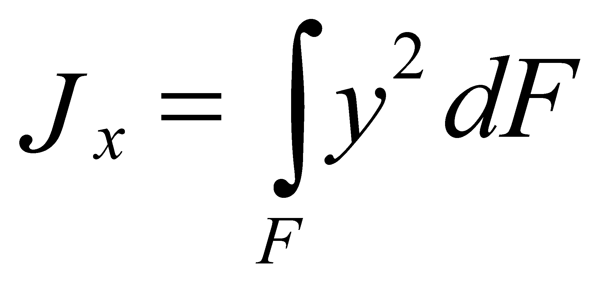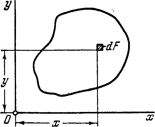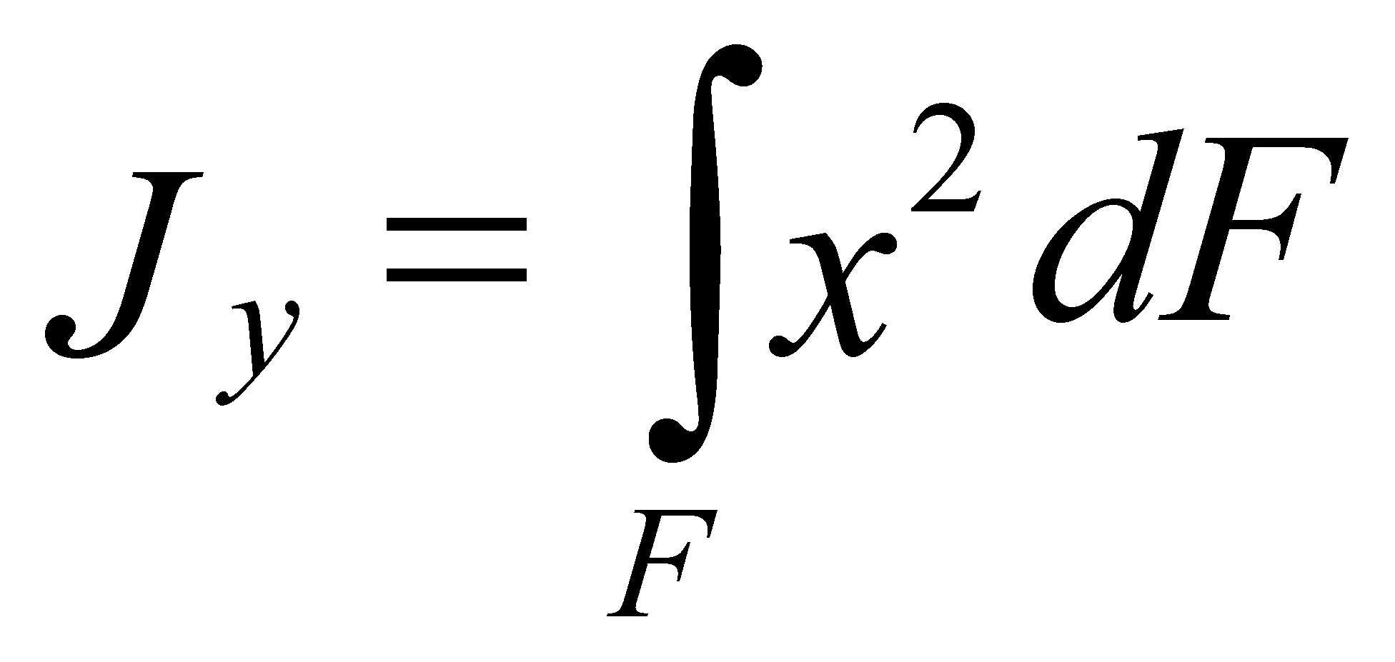 Точка пересечения центральных осей называется центром тяжести сечения. Путем поворота осей можно показать, что статический момент относительно любой оси, проходящей через центр тяжести, равен нулю. Нетрудно установить тождественность данного определения и обычного определения центра тяжести как точки приложения равнодействующих сил веса. Если уподобить рассмотренное сечение однородной пластинке, то сила веса пластинки во всех точках будет пропорциональна элементарной площади dF, а момент сил веса относительно некоторой оси — пропорционален статическому моменту. Этот момент сил веса относительно оси, проходящей через центр тяжести, равен нулю. В нуль обращается, следовательно, и статический момент относительно центральной оси. Моменты инерции сечения В дополнение к статическим моментам рассмотрим еще три следующих интеграла: